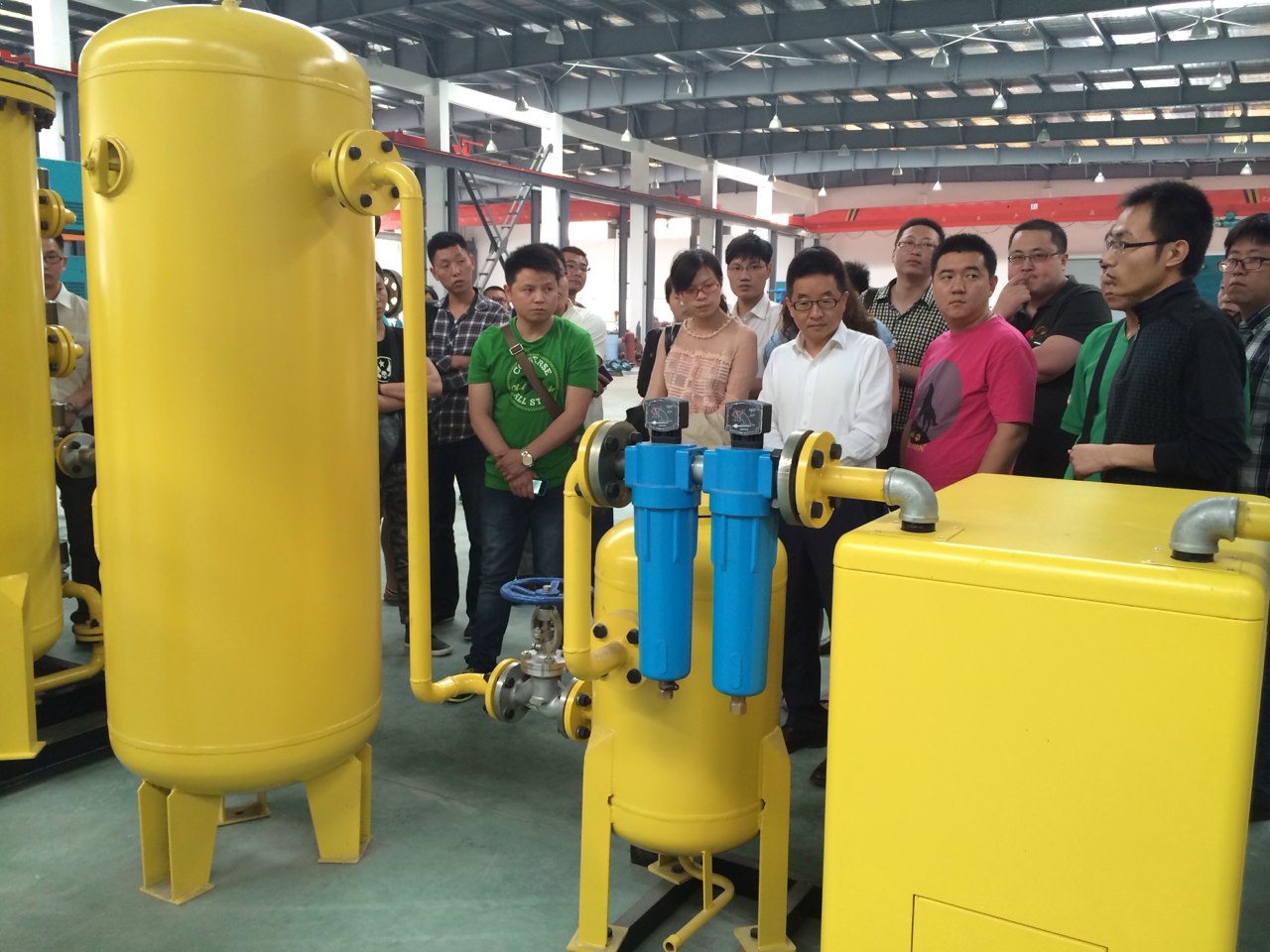 培训的主要内容有开贝拓技术总监陈荣耀的《压缩空气净化设备基础知识培训》、销售总监黄先进的《压缩空气干燥机销售基础培训及销售心得分享》。此外,阿普达实业技术部工程师仲亚还作了《制氧制氮设备相关技术培训》。本次培训重在普及参训人员的冷干机基础知识,提升他们了解产品的广度和深度,并在此基础上,注重个人和团队销售能力与技巧的培养。参训人员在聆听讲座的同时,围绕典型案例,展开互动讨论,分享经验,以此来激活培训氛围,用小组PK来巩固培训效果。最终考评结果揭晓,苏州斯伊特和天津超滤技高一筹,共同摘得“团体优胜奖”。学员在培训之余还参观金山阿普达工业园、嘉定上海超滤工厂。下图为参训者参观阿普达金山工业园生产车间。