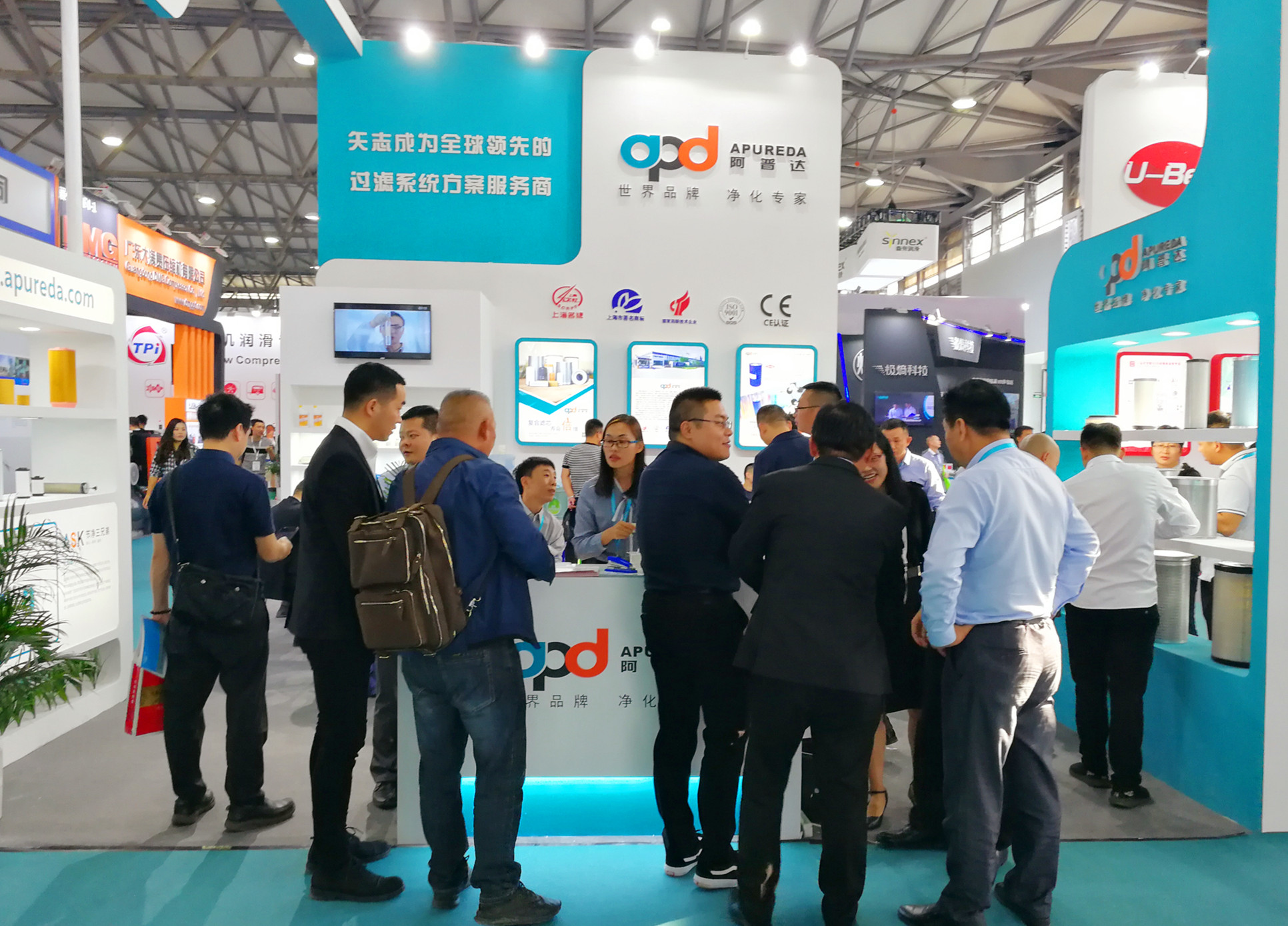 10月26日,上海新国际博览中心,2019PTC展圆满落幕,但展会的精彩让人印象深刻。阿普达和合作伙伴此次以全新的展台形象、超强豪华的全品类阵容亮相,从空压机三滤元器件、专用润滑油、后处理设备和压缩空气不锈钢管路等等,吸引来自国内外客商关注的目光。