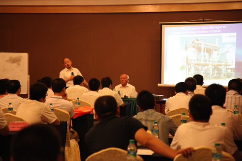 培训班由阿普达集团聘请的荷兰籍专家MR. DICK主讲。MR. DICK是国际知名吸干器设计专家,曾在具有70年吸干器设计、生产历史的知名企业Delair担任技术总经理。报名申请参加培训的企业多达一百余家,受名额所限,来自中船第九设计研究院、上海唐盛国际有限公司、优尼可尔压缩机(北京)有限公司、西梅卡亚洲气体系统有限公司、北京丰电科技有限公司、沈阳百事得净化设备有限公司、杭州三瑞机械有限公司、上海杰瑞空气设备有限公司等三十家知名设计院和知名企业的七十多位高层领导参加了本次培训。围绕国家“十二五”节能减排产业战略规划,主讲专家对吸干器零气耗鼓风热、压缩热、天然气吸干设备的设计、生产和维护等前沿理念和知识进行全面而细致的讲解。培训过程中还展开了热烈的研讨,各参会学员踊跃发言。主讲专家对学员们提出的问题作了详尽的解答。