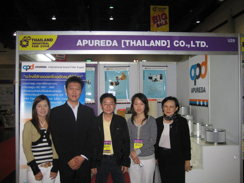 2008年3月1日阿普达国际(集团)泰国分公司应邀参加工业展览会,总裁张剑敏先生亲临展会现场,并与客户留影纪念。