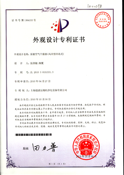 上海超滤压缩机净化设备有限公司自主研制的压缩空气干燥器(风冷型冷